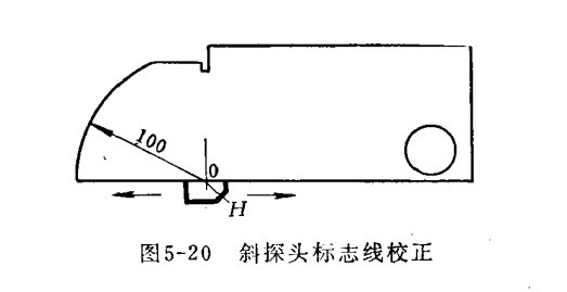 七、斜探頭波束零點線的校正 斜探頭有機玻璃楔塊上的零點線和壓電晶片的中心線重合。斜探頭在H位置移動,直到從100毫米弧度處獲得最大的反射波為止,如斜探頭零點線與試塊上0點重合,則斜探頭的零點線正確。否則,需移動探頭的晶片,直至重合為止。此時斜探頭的零點線即為聲波主線的入射點。