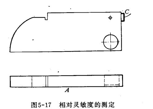 相對靈敏度測定,如下圖,將超聲波探傷儀探頭放在C位置。靈敏度控制最初放在最小位置,移動探頭,直到熒光屏上出現(xiàn)1.5毫米洞反射回的波為止。在給定的靈敏度控制位置下,反射的高度就是相對靈敏度。