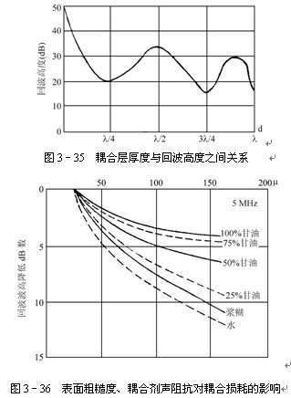 由圖可知,耦合劑聲阻抗越大,越接近于晶片(或保護膜)和工件的聲阻抗,探傷儀探測工件表面粗糙度越小即光潔度越高,則耦合損耗越小,透聲性能越好。此外,耦合損耗還與探測頻率和保護膜性質(zhì)有關(guān)。
