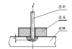 將一定形狀的鋼制壓針﹐在規(guī)定的試驗(yàn)力作用下﹐壓入試樣表面﹐當(dāng)壓足表面與試樣表面緊密貼合時(shí)﹐壓針端面相對壓足平面有一定的伸出長度L﹐長度L越大﹐表示邵氏硬度越低﹐反之越高,測量示意圖見下圖。