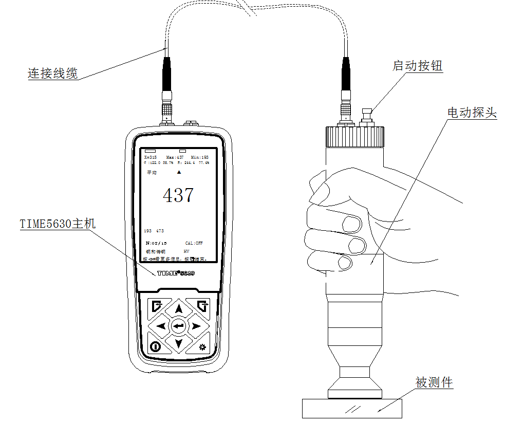 將探頭放置好后,按住啟動按鈕,探頭內(nèi)部的電機啟動,開始測量,屏幕上依次顯示“請等待 ”、“保持時間倒計時”,待屏幕中央顯示測量值且電機停止運轉(zhuǎn),屏幕上再次出現(xiàn)“請開始測量”時,可以進(jìn)行下一次測量。